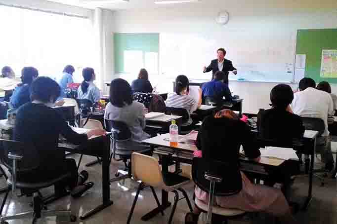 「こども福祉科」1年生がLHRで山岡校長先生のレポート指導を受けました。