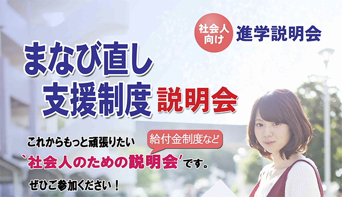 12月6日(水)まなび直し支援制度説明会を行います。 まなび直し支援制度説明会を行います。 これからもっと頑張りたい“社会人のための説明会”です。 給付金制度などの説明も致します。 ぜひご参加ください。 詳しい内容はこちらをクリックして下さい。 ↓↓↓ 2017年12月4日 月曜日|