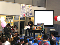 初日はステージ企画の北陵幼稚園のマーチングから始まり、様々なイベントが行われました。最後のステージ企画のもちまきでは、多くのお客様がサロンに集まり、2階から投げられるおもちを子供から大人まで必死にキャッチしていました。