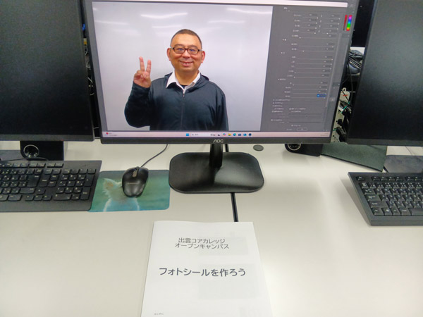 情報システム科で「オリジナルフォトシール作成体験!」Photoshopで自分の画像と背景画像を組み合わせ編集、自分だけのプリクラシールを作りました。参加してくださった皆さん、ありがとうございました。次回の開催は、3月7(土)、多くの方のおいでをお待ちしています。